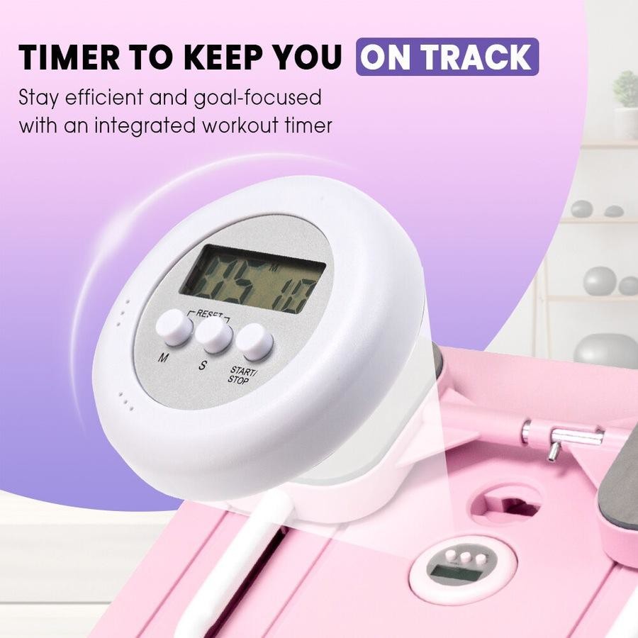 - Accessories Included: Knee pad, foam handles, spring resistance bands, built-in timer