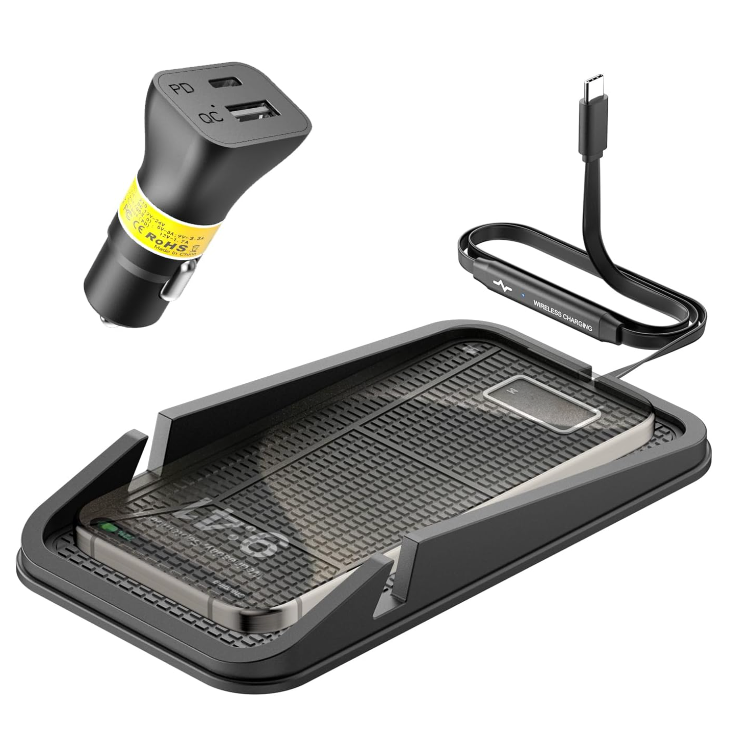 💡 【New design Wireless charger pad to avoid over heat】 - GFOUK® C17 wireless car charger has been design to separate the charging coil from the circuit board which might get some heating when the pad coil is supply wireless charging. As the wireless charging coil is inside charging pad and the circuit board is outside the pad, they are far from each other. when you are charging on the pad (over the charging coil), the circuit board will not get heat, so do the whole charger pad and your phone.