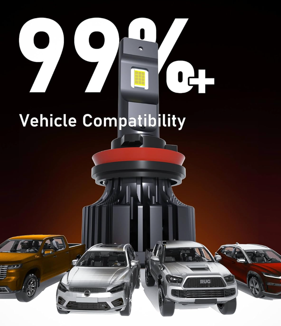 [Fanless Design]: Without noise, provide a quiet comfortable driving environment. New 6063 aviation aluminum heat sink replaces the original fan cooling function, intelligently recognize the temperature, fast and stable heat dissipation, make the light bulb last over 50,000 hours lifetime