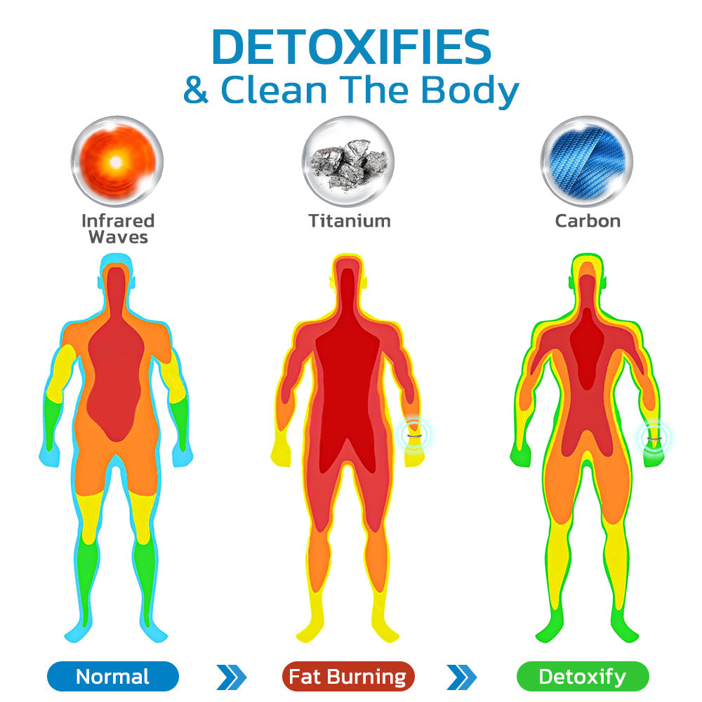 The GFOUK™ Blue Carbon TitanBracelet also emits negative ions. They increase the permeability of the cell membrane which facilitates the absorption of tissue fluid into lymph vessels. Therefore, they prevent the blockage in the lymphatic system.