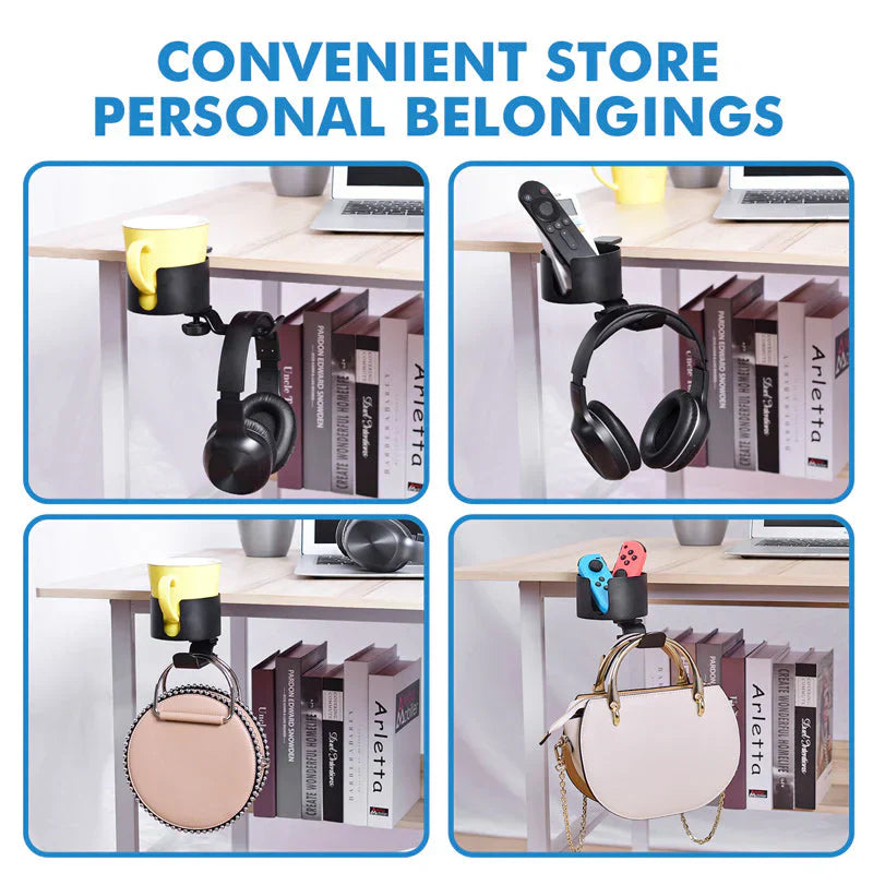 - 2-in-1 Function: Universal design for cup holder and headphone holder. You can clip the cup holder on your desk surface