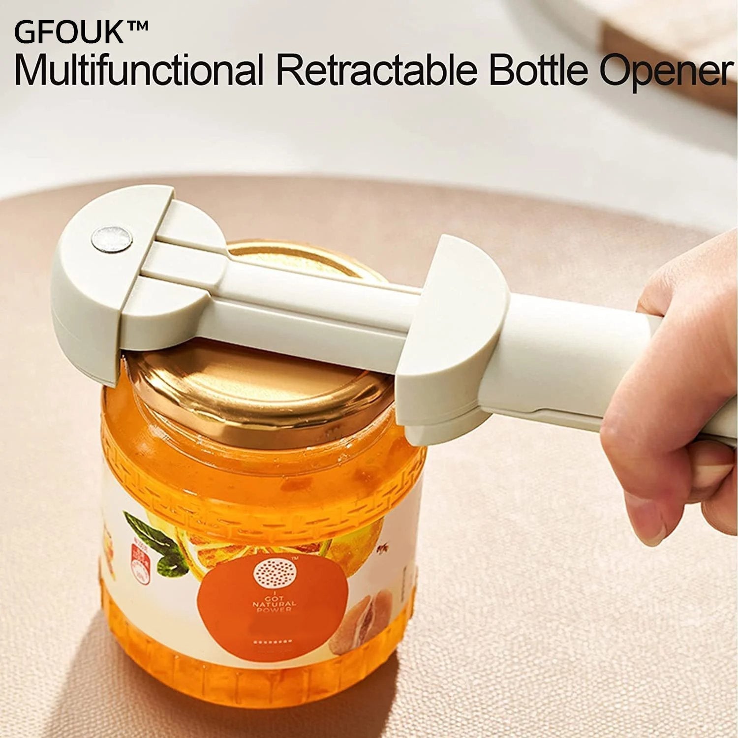 The GFOUK™ multifunctional retractable bottle opener is made of nylon and stainless steel, making it tough and long-lasting for durability and easy cleaning. Jar opener bottle opener for weak hands seniors with arthritis.